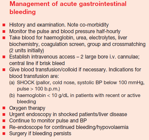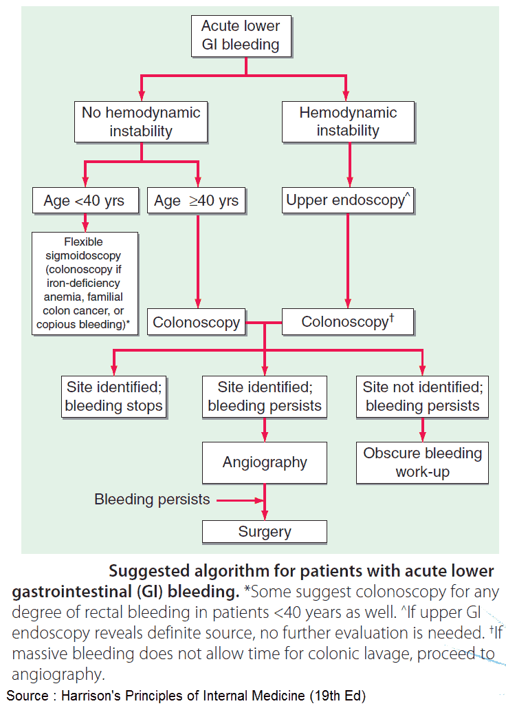 GI bleeding is an emergency, and treatment may need to be initiated before a diagnosis has been made. Always remember that since blood is a cathartic, hematochezia may be caused by an upper GI bleed.