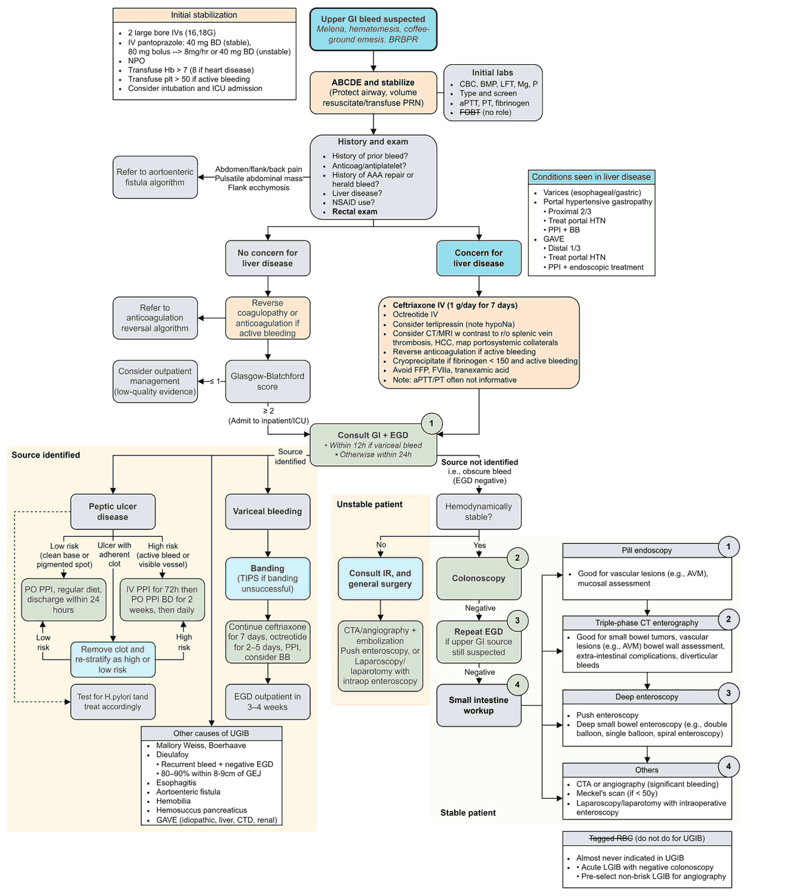 - Type and cross even if there is only a small GI bleed and the patient is hemodynamically stable. Blood should be cross-matched for more significant bleeding.