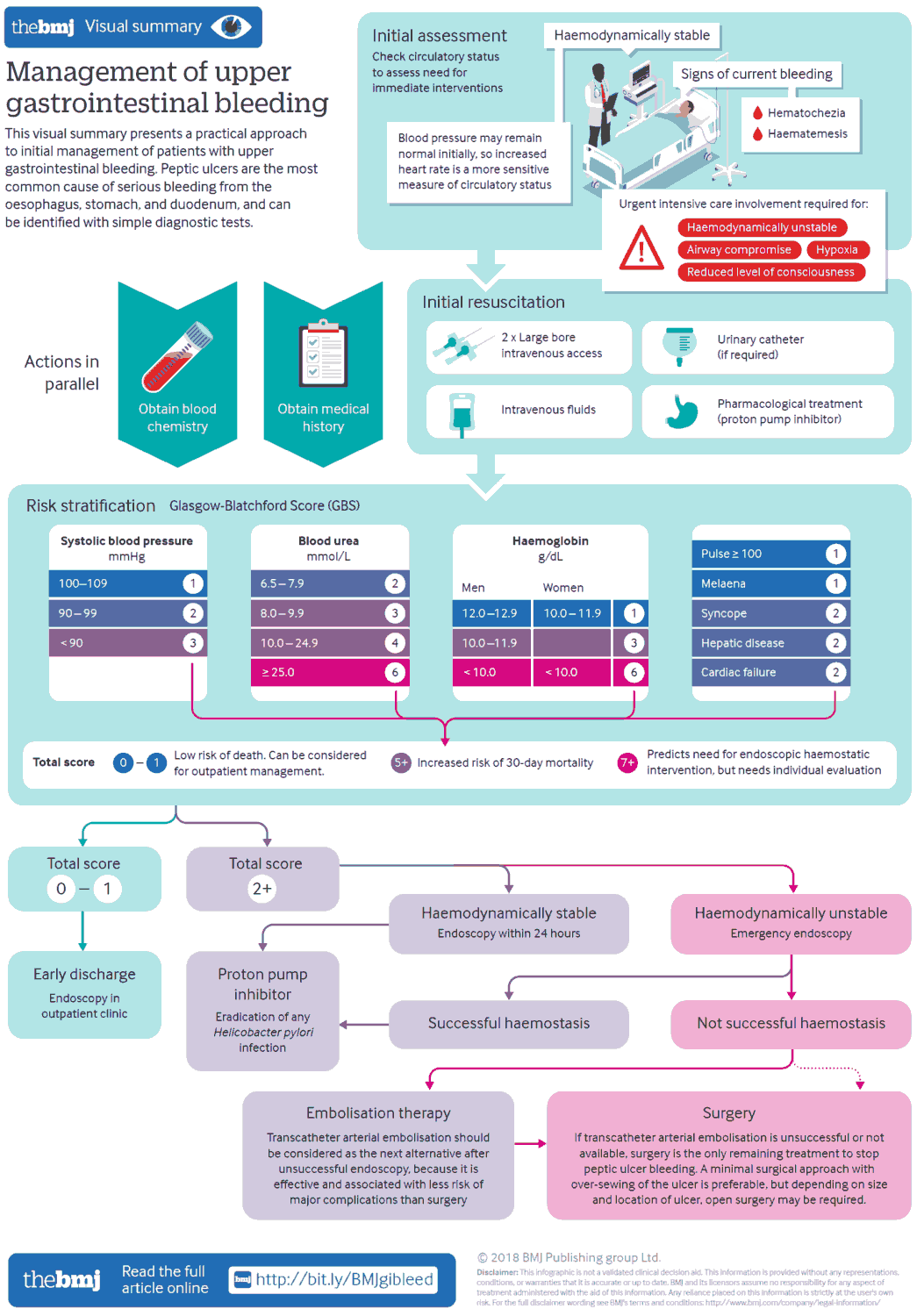 The risk of rebleeding may be estimated; for example, Mallory-Weiss tears or erosive gastritis have a low risk of rebleeding with appropriate management, whereas esophageal varices have a much higher risk of rebleeding.