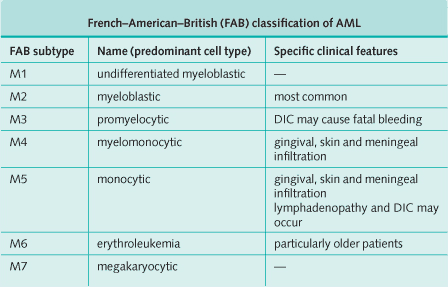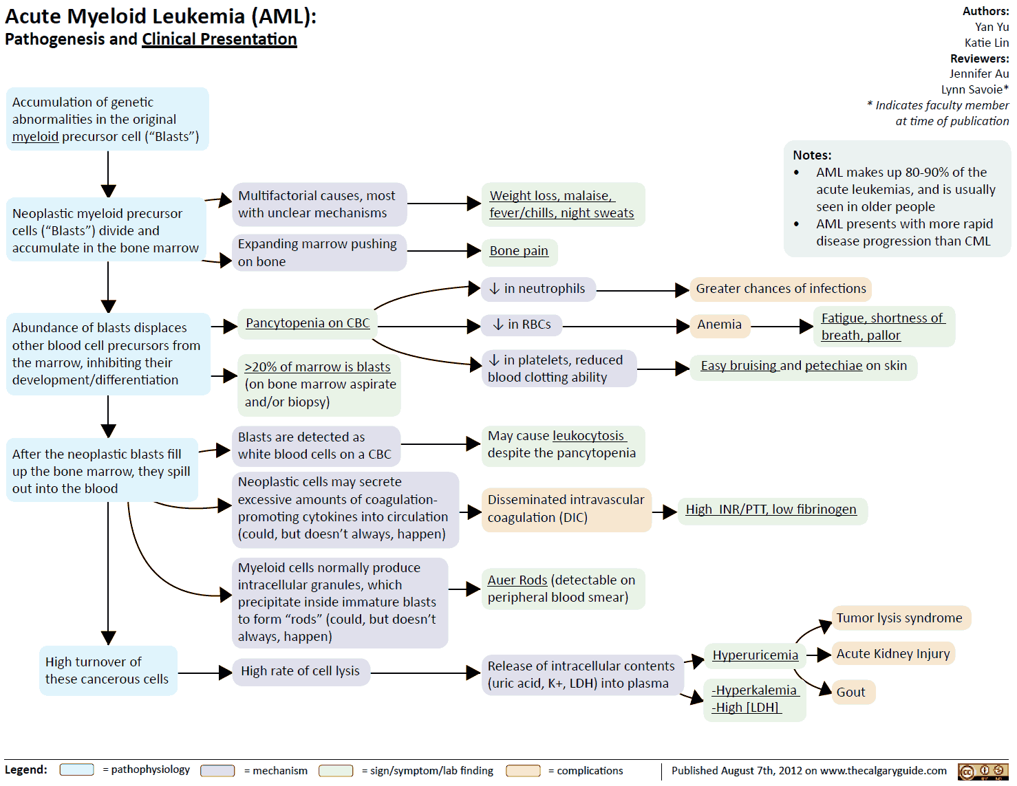 - Poor prognostic factors include increasing age, very high white cell count, secondary leukemia (e.g., previous myelodysplasia), cytogenetic abnormalities, and the presence of disseminated intravascular coagulation (DIC).