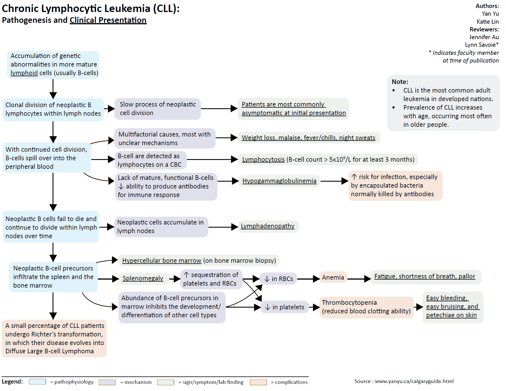 - In around 10% of CLL, Richter transformation to high-grade lymphoma occurs as a terminal event.