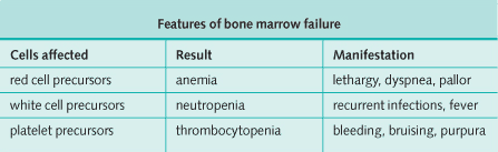 - Accumulation of immature hemopoietic cells in the bone marrow, which can cause bone marrow failure.