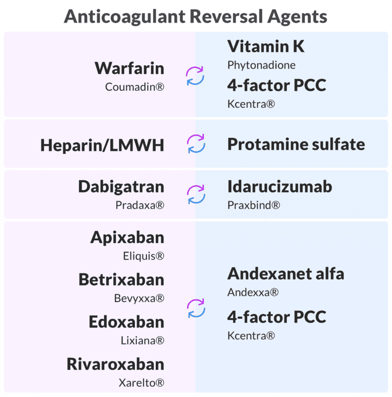 - Discuss the reversal of the most common anticoagulant: warfarin;