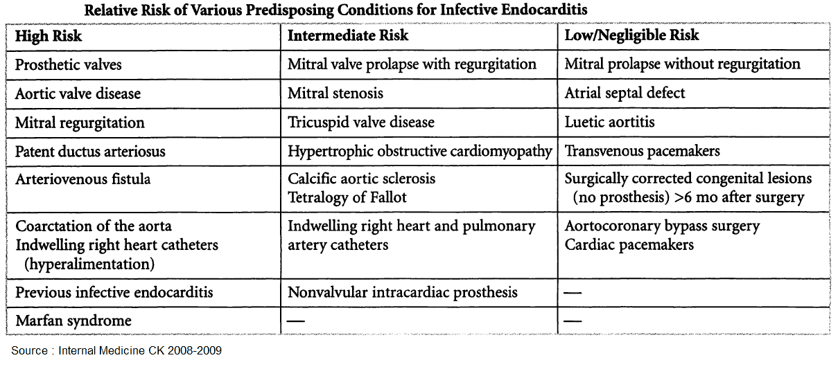 Relative Risk of Various Predisposing Conditions for Infective Endocarditis