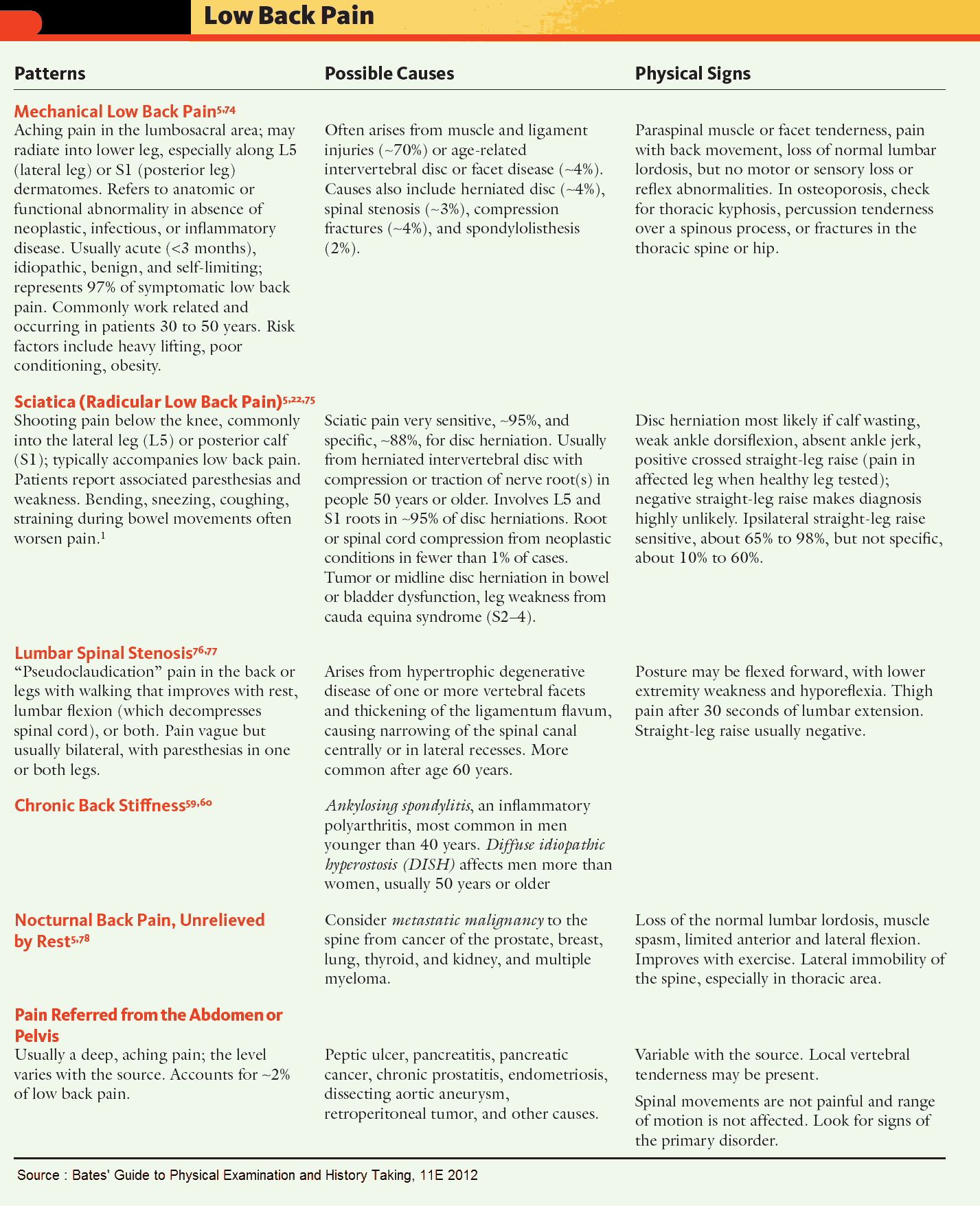 - If no red flags are present and patient does not need further work-up, then the likely default diagnosis is benign mechanical (lumbar strain) LBP