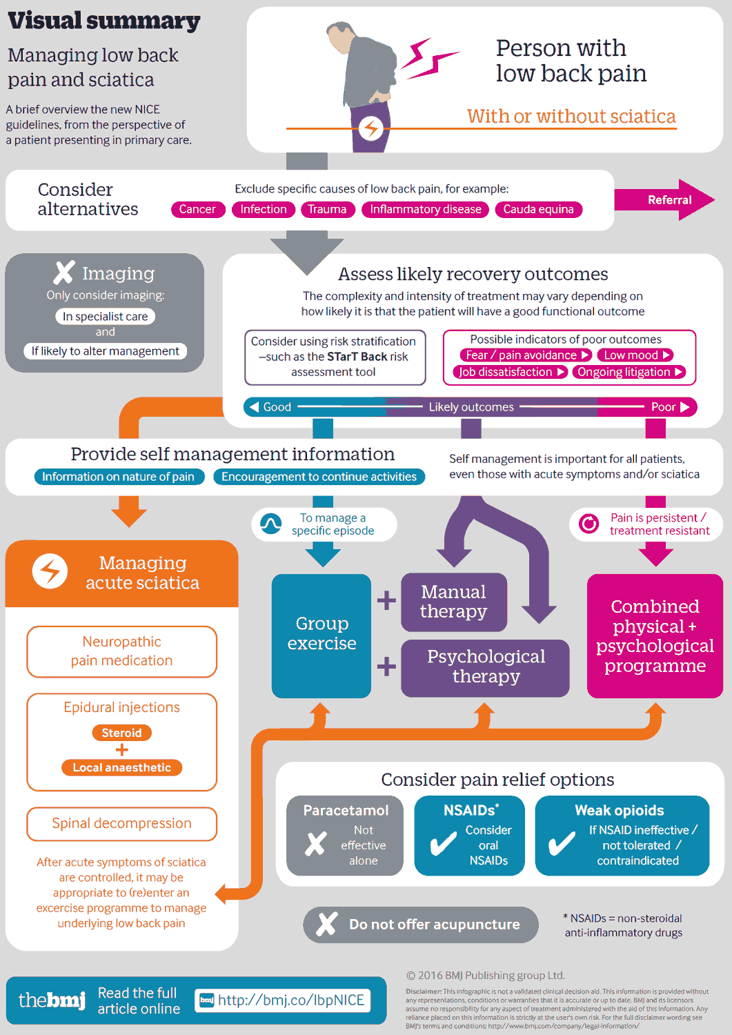 • Continuing normal daily activities as tolerated leads to more rapid recovery than either bed rest or back immobilizing exercises (NEJM 1995;332(6):351-5)