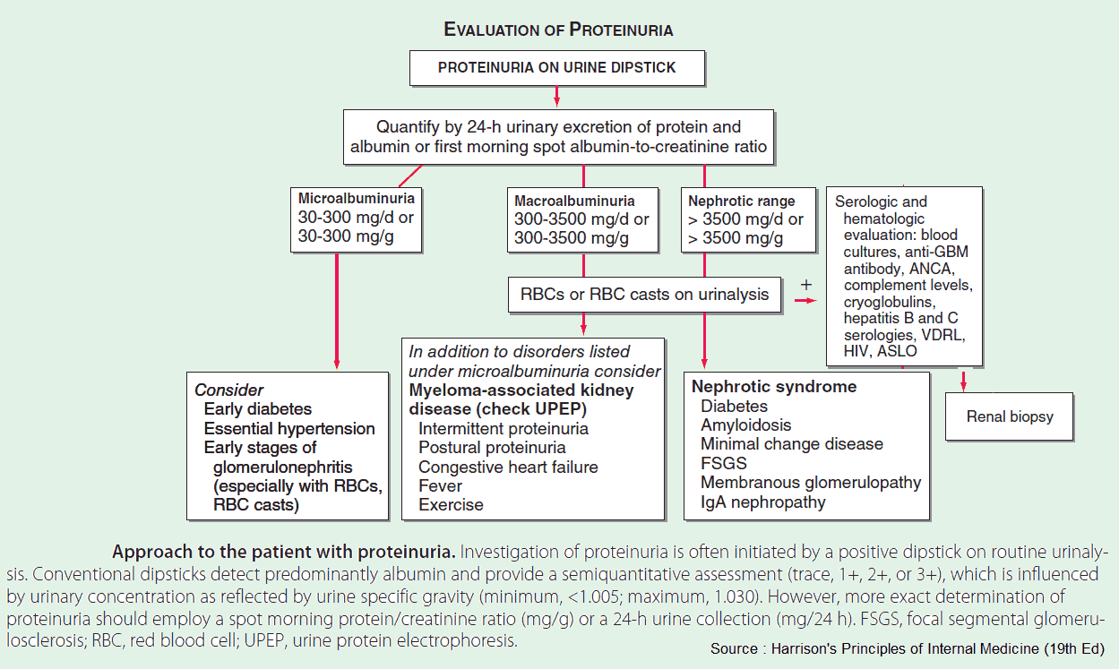 - Orthostatic proteinuria: common in patients under 30 years of age; significant proteinuria when upright but normal when supine.