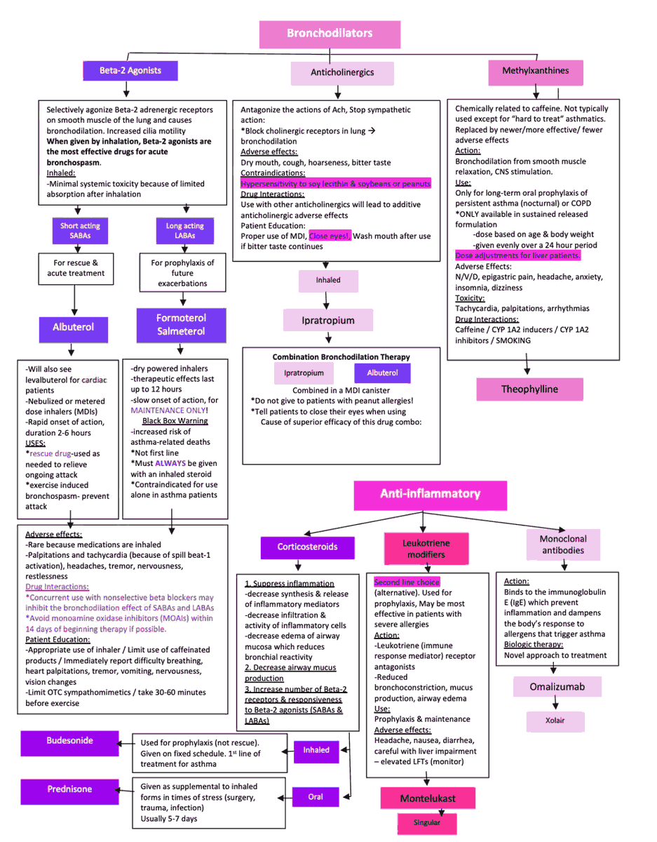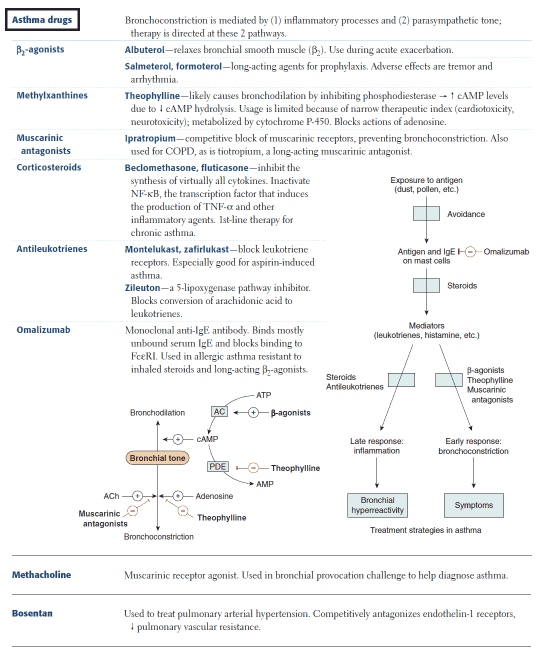 - Drugs that inhibit smooth muscle contraction (e.g., β2-agonists, methylxanthines or theophylline derivatives, anticholinergics).