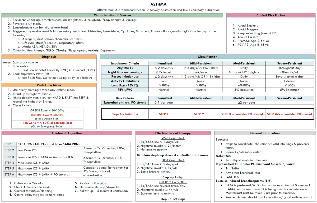 Therapy is aimed at achieving a stable, asymptomatic state with the best pulmonary function possible. The first step is to educate patients to function as partners in their management. The severity of the illness needs to be assessed and monitored with objective measures of lung function.