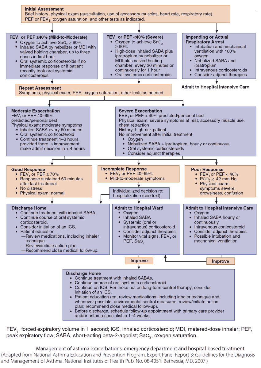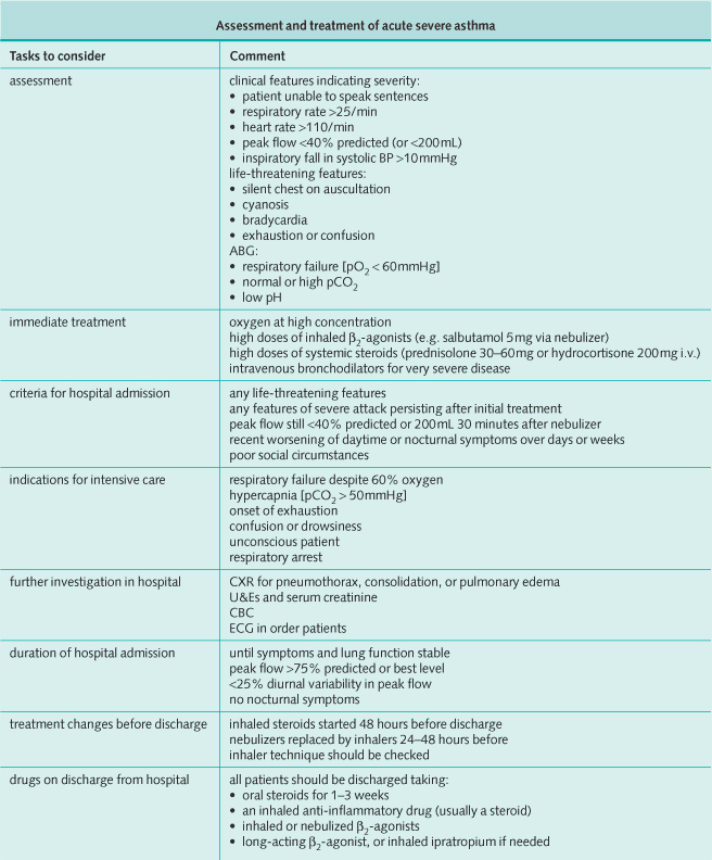 In clinical practice the two most common settings in which patients require treatment are emergency treatment of acute severe asthma and chronic therapy.