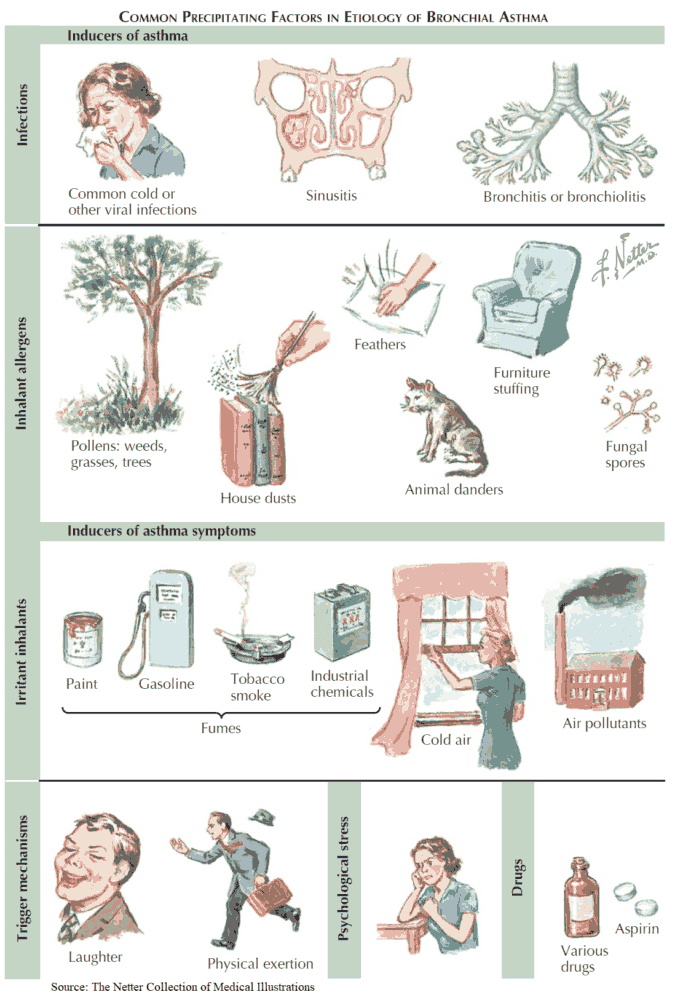 A number of factors interact with normal airway responsiveness and provoke acute episodes and include the following: