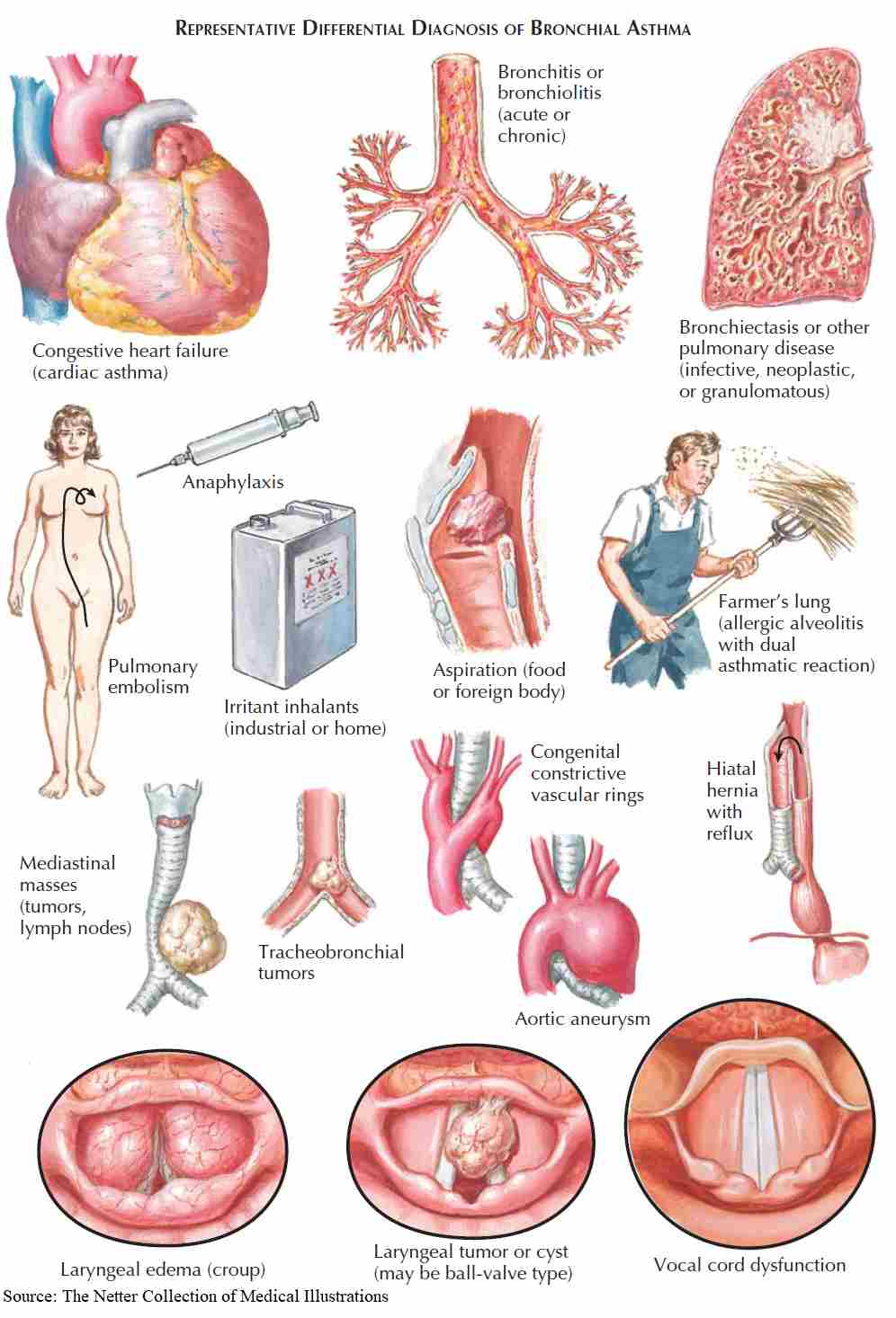 In a small minority of patients the diagnosis can cause some difficulty, and the following differential diagnoses for wheezing and shortness of breath should be considered:
