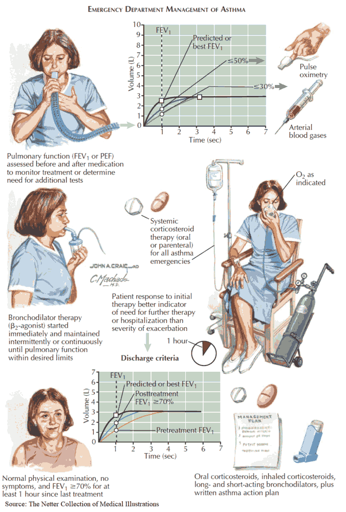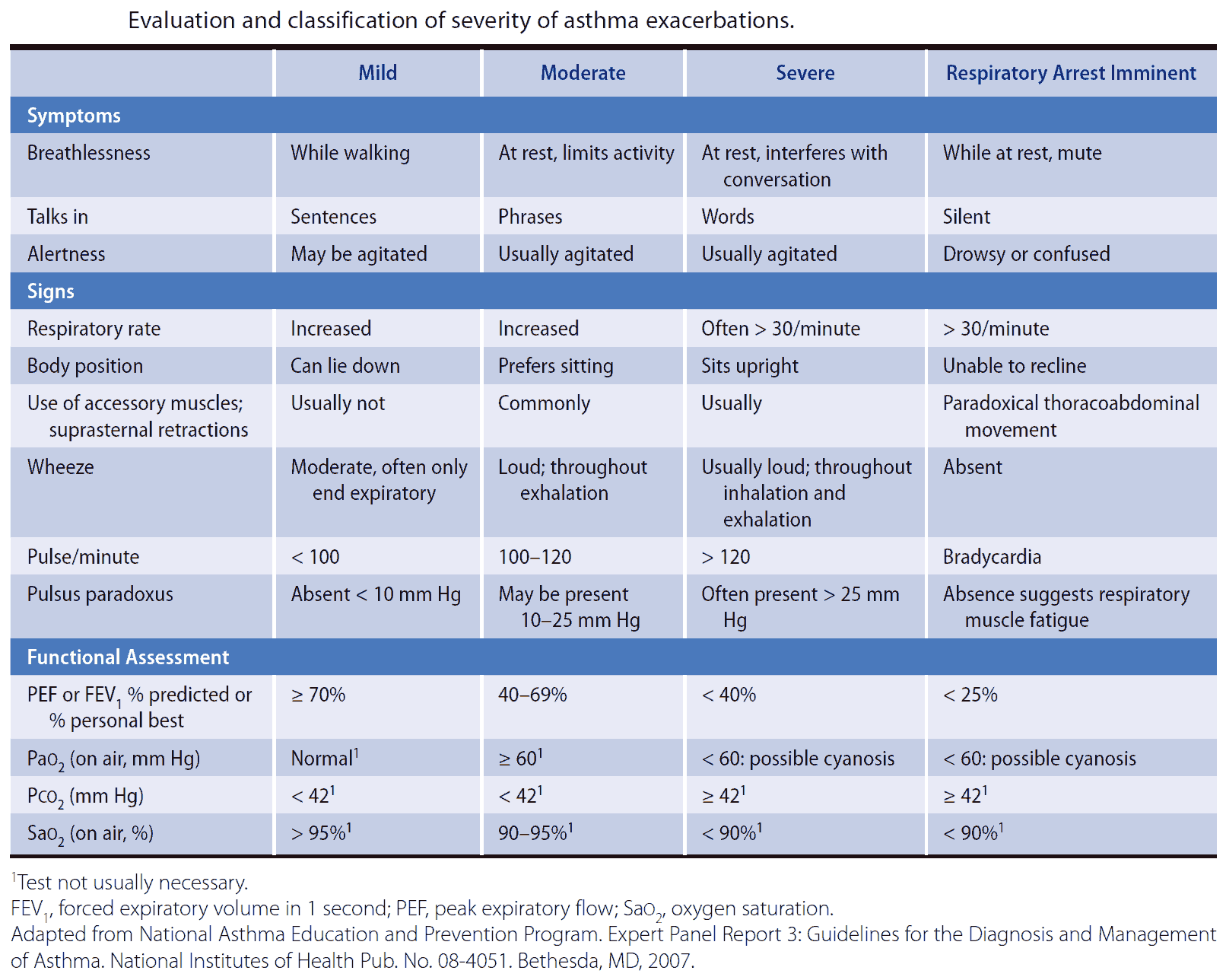 Failure of these signs to remit promptly after aggressive therapy requires objective monitoring of the patient using measurements of arterial blood gases (ABGs) and the PEFR or FEV1.