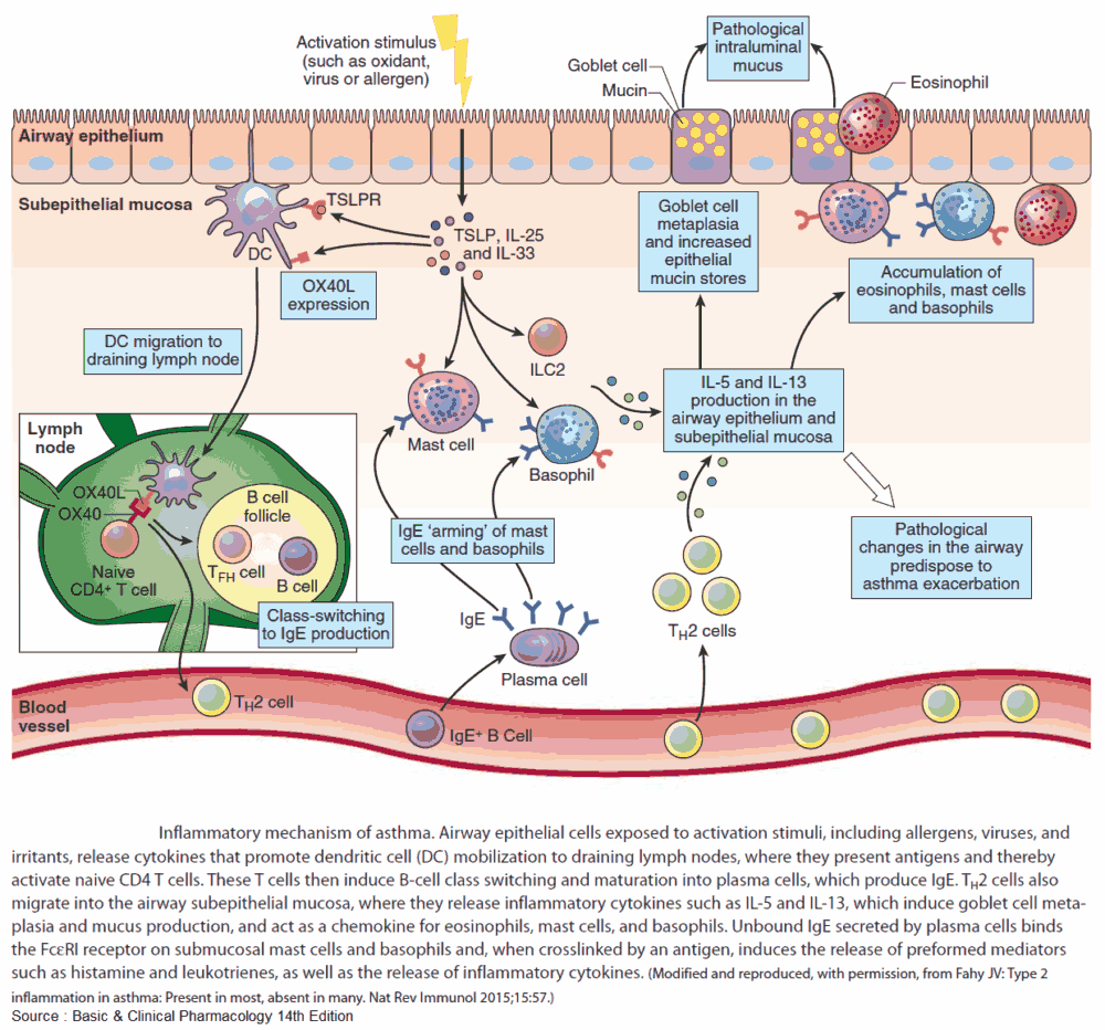 This is based on the observation that increased numbers of mast cells, epithelial cells, neutrophils, eosinophils, and lymphocytes have been found in the bronchoalveolar lavage fluid of patients with asthma.