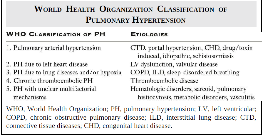 - The World Health Organization (WHO) divides PH into five groups based on the etiology.