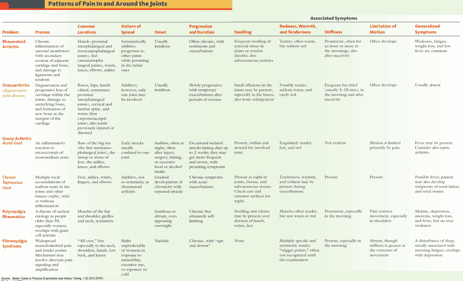 The different types of joint disease have many features in common, and examination will provide further additional important clues to the etiology. Ask about the following: