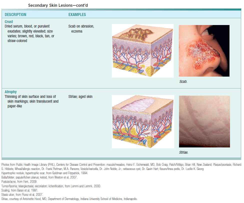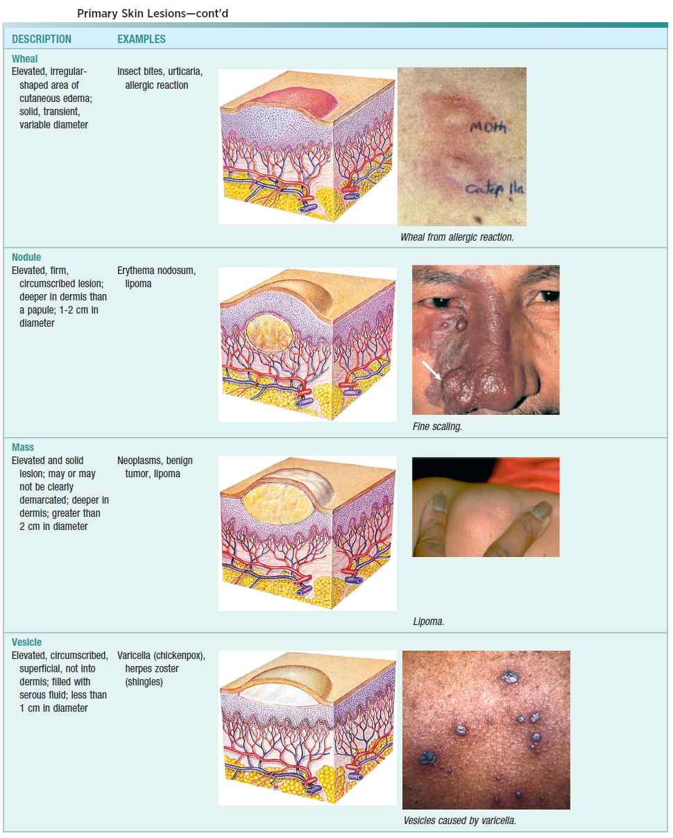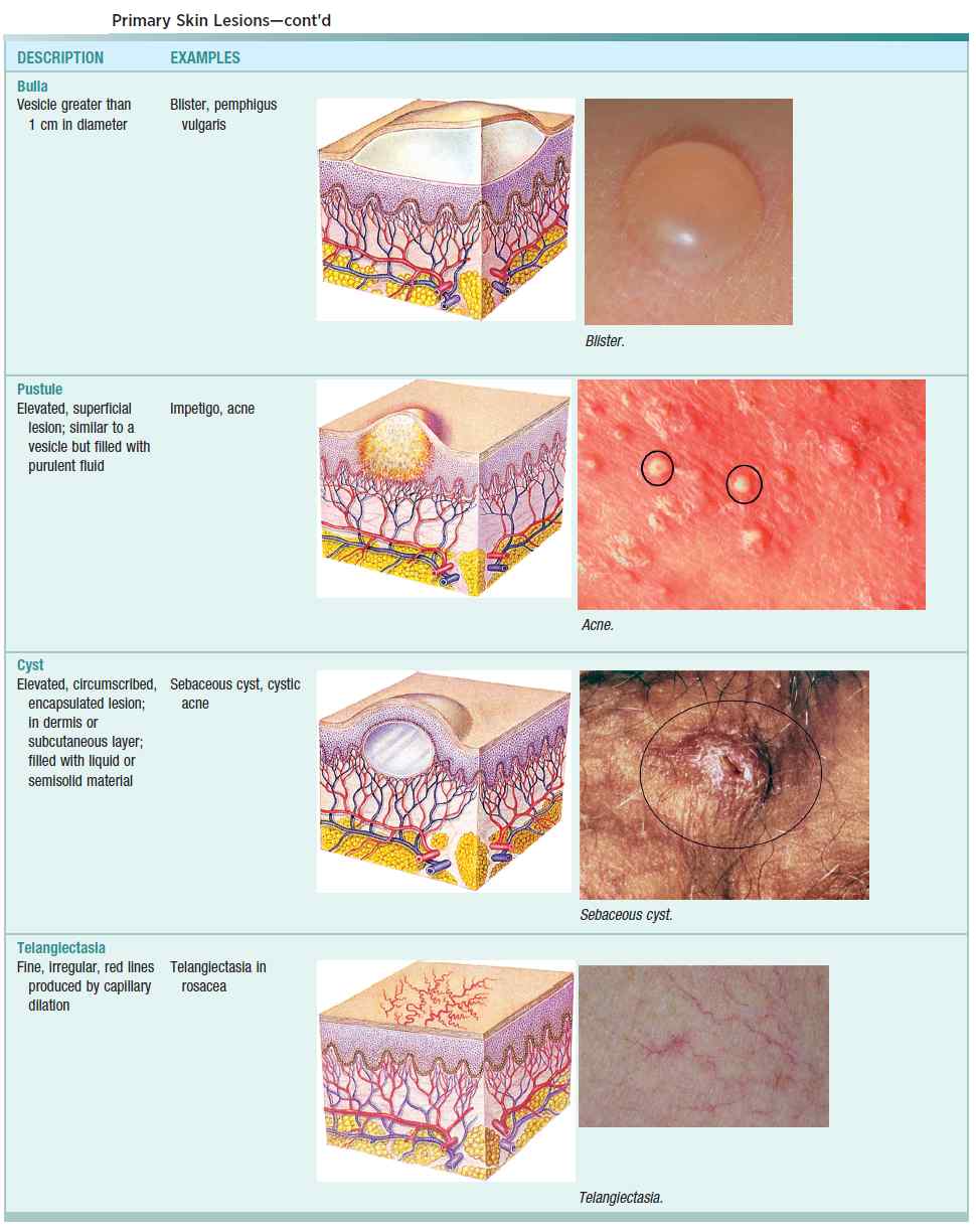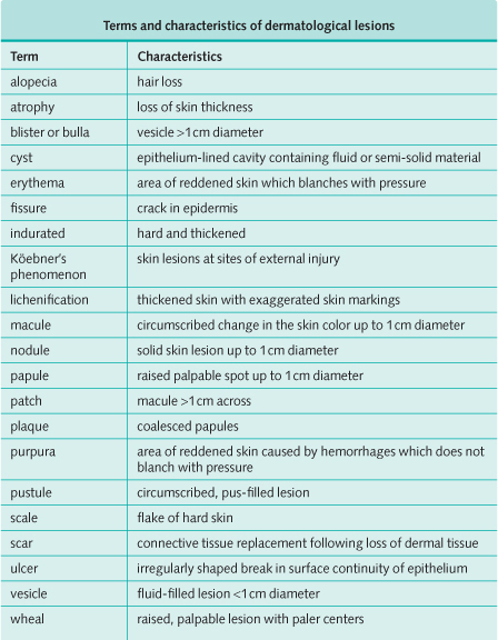 Terms and characteristics of dermatologic lesions are given in the image below.